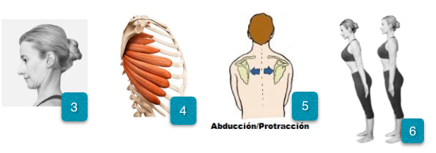 - Activación del serrato anterior, gracias a la abducción de las escápulas. (foto 4- 5)